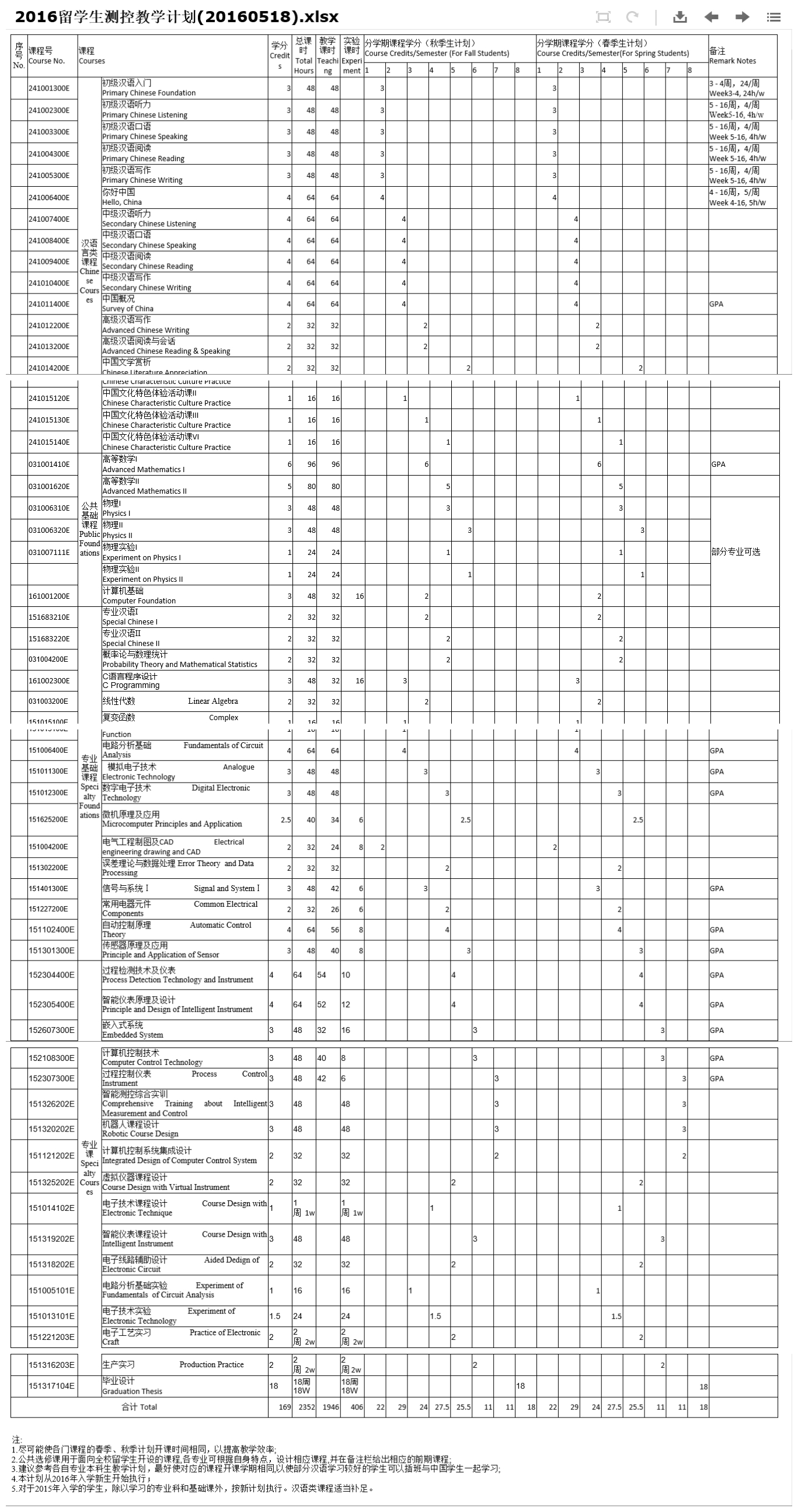 职工测控教学计划
