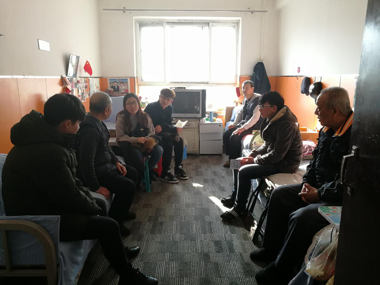 在员工党员到达之前,热情的老人们早早的就在活动室有序地坐好,等待着这群朝气蓬勃的年轻党员的到来。当员工党员们出现在活动室的瞬间,老人们乐得合不拢嘴,仿佛久别重逢的亲人一样,热情地请他们到屋里坐。