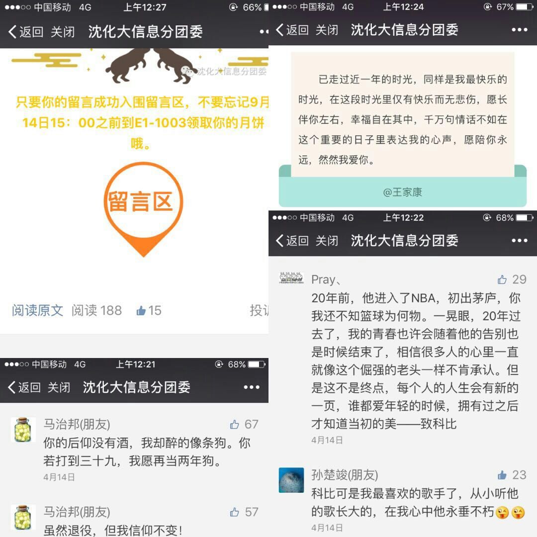 2016年4月14日,伟大的黑曼巴科比退役,微信平台开展话题“一句话送给科比”活动。一时间关注不断,只推送当天就有300多人参与互动并留言。