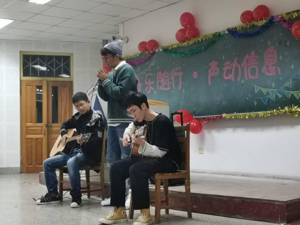 中场时,器乐部为我们带来了吉他弹唱表演,同学们都沉浸在优美的民谣中。心中是一种无法言语的青春激情在心中久久回荡。