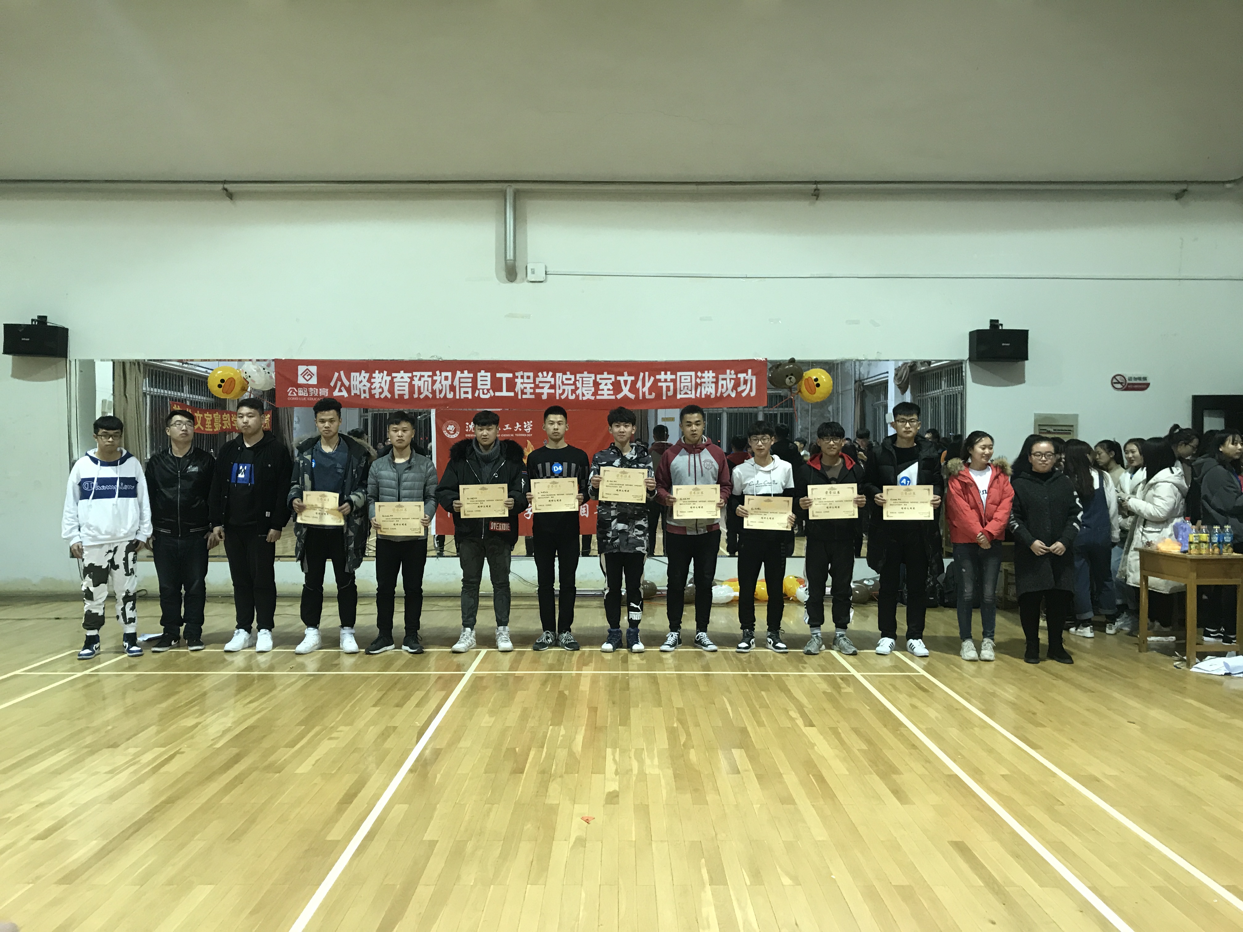 寝室是我们每个人温馨的家,为了增进寝室同学之间的交流与友谊,为了更好地营造寝室文化氛围,增强寝室凝聚力。三亿体育第四届以“激昂青春韵,共筑信息情”为主题的寝室文化节初赛于2018年11月7日在校健美操馆顺利举办。