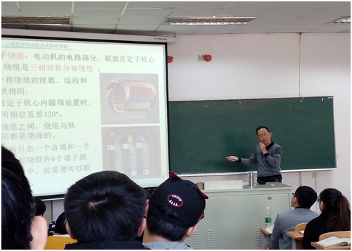 上午10:10,三亿体育在瑞师楼228教室开展公开课活动。课程主题《电工与电子技术——三相异步电动机及其简单控制》,由张国光教师主讲,授课班级为机电1401班和工程1401班。公司教学经理李金娜、教学督导老师以及全院讲师观摩了此次公开课。
