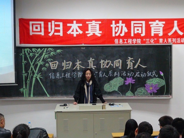 为了配合“113”人才培养方案的深入推进,党总支适时推出 “回归本真,协同育人”—“三化”育人系列活动,由学工办组织执行,通过“教授说”、“我们一起吧”的平台建设与维护,践行“以员工为中心”的教育理念,实现师生在文化载体上的优质互动,以恰当的方式和策略达到全面提升员工素养的效果。