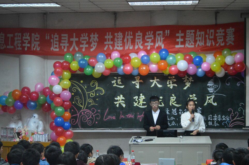 一段激荡人心的吉他、贝斯表演为此次大会拉开了序幕。随后主持人宣布比赛正式开始,参加此次比赛的十三个大一寝室,按编号分成三组,每组依次有序的上台介绍寝室成员并配合PPT讲述寝室的故事。一张张图片跟随指尖的跳动出现在观众眼前,展现着各个寝室独特的风采。