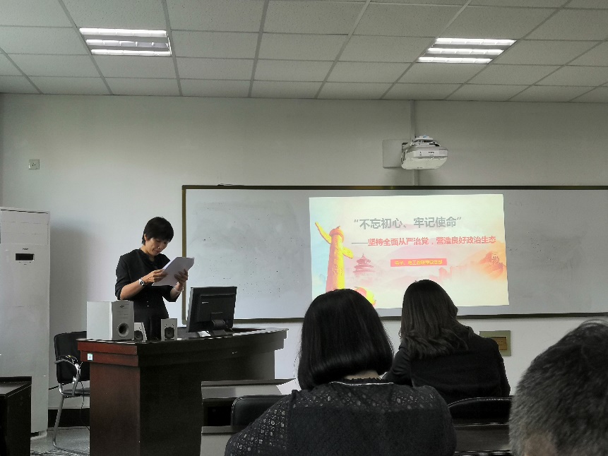 本次活动包括四部分内容。首先由王健同志为与会同志诵读了《习近平论“不忘初心、牢记使命”文献摘编》。读原文、学原著有助于各位党员进一步体会“不忘初心、牢记使命”主题教育的意义。