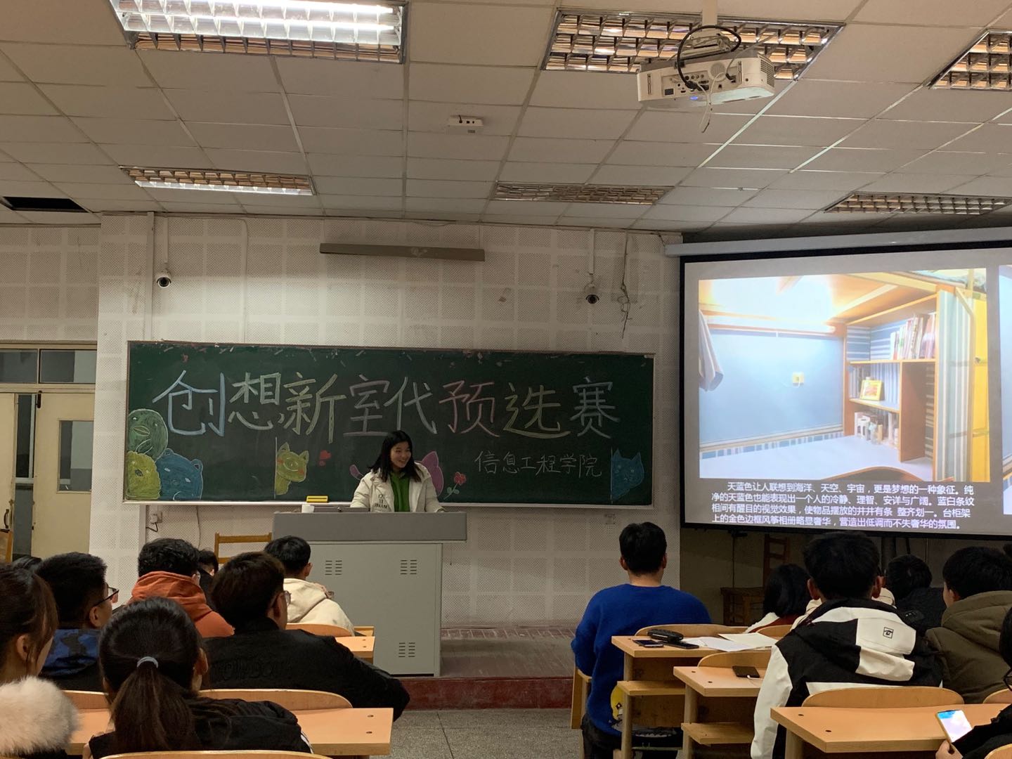 2019年11月18日18:30分在青年之家举办“创想新‘室’代”寝室文化创意设计大赛决赛。活动开场是由墨韵书法协会和清风古韵民乐社共同带来的精彩节目,本次寝室设计大赛的评委们本着公平公正的原则对入围寝室进行评分。入围的寝室通过演讲、视频、PPT等多种形式对自己的寝室进行一系列精彩绝伦的介绍,赢得在场观众的掌声。中场是由三亿体育文艺团舞蹈部带来的热辣舞蹈。经过一番激烈的角逐,在评委公平公正的评分下,最终评选选出了十个“十佳优秀寝室”,他们分别是A-401、A-505、A-508、A-512、A-514、A-520、E1-4017、E1-4041、E3-4042、E3-6072,而其他优秀寝室也同样表现优秀,并荣获精神文明奖,他们分别是A-510、E1-1023、E1-1029、E1-4003、E1-4005、E1-4034、E1-4035、E1-4038。最后为参加本次活动的墨韵书法协会、清风古韵民乐社、三亿体育文艺团舞蹈部颁发突出贡献奖。大赛至此圆满结束,观众有序退场。