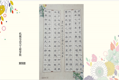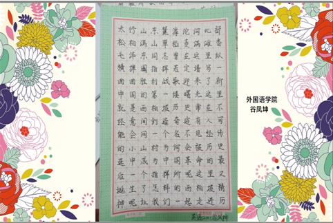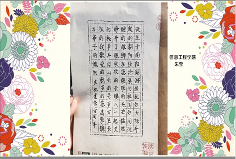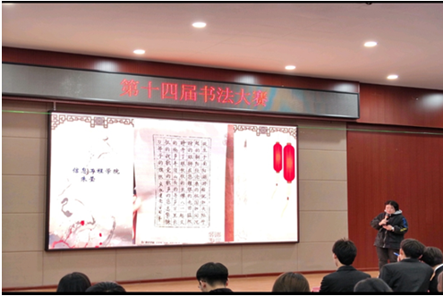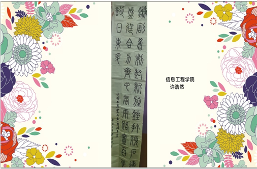 笔墨挥洒韵味,捷思闪烁光泽。书法是中华文化的一种象征,象征着中华文化的博大精深,身为青年一代的我们,应积极弘扬中国传统文化精神,通过此次活动感染身边的每一位同学,为伟大时代抒怀,为推动社会主义精神文明建设营造浓郁的文化氛围,为传统文化的薪火相传作出努力和贡献。