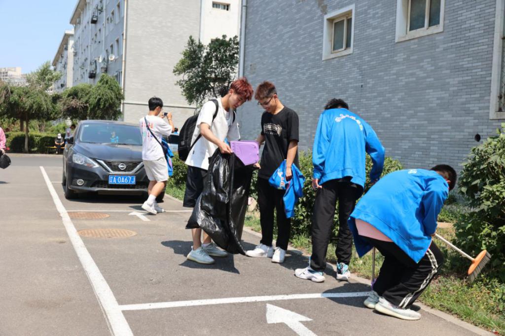 志愿者分别对楼栋、花坛和宣传栏进行打扫、擦洗,清理社区内垃圾。扫把扬过,垃圾尘土“乖乖集合”,一条条小路恢复样貌、整洁如初。玻璃被抹布擦过,水渍干后,宣传栏的内容又清晰可见。大家热情洋溢,展现出阳光向上、精神饱满的良好状态。