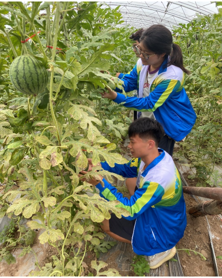 交流结束后,村干部带领实践团队参观了东营子村乡村振兴产业示范园区和集体经济产业区,着重介绍了示范园区的冷棚技术和集体经济产业区的暖棚技术,实践团队的同学们还进入其中,近距离观察了农作物,使实践团队的同学们感受到了大棚技术的神奇之处。