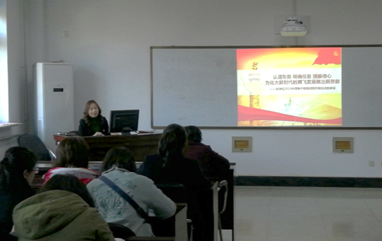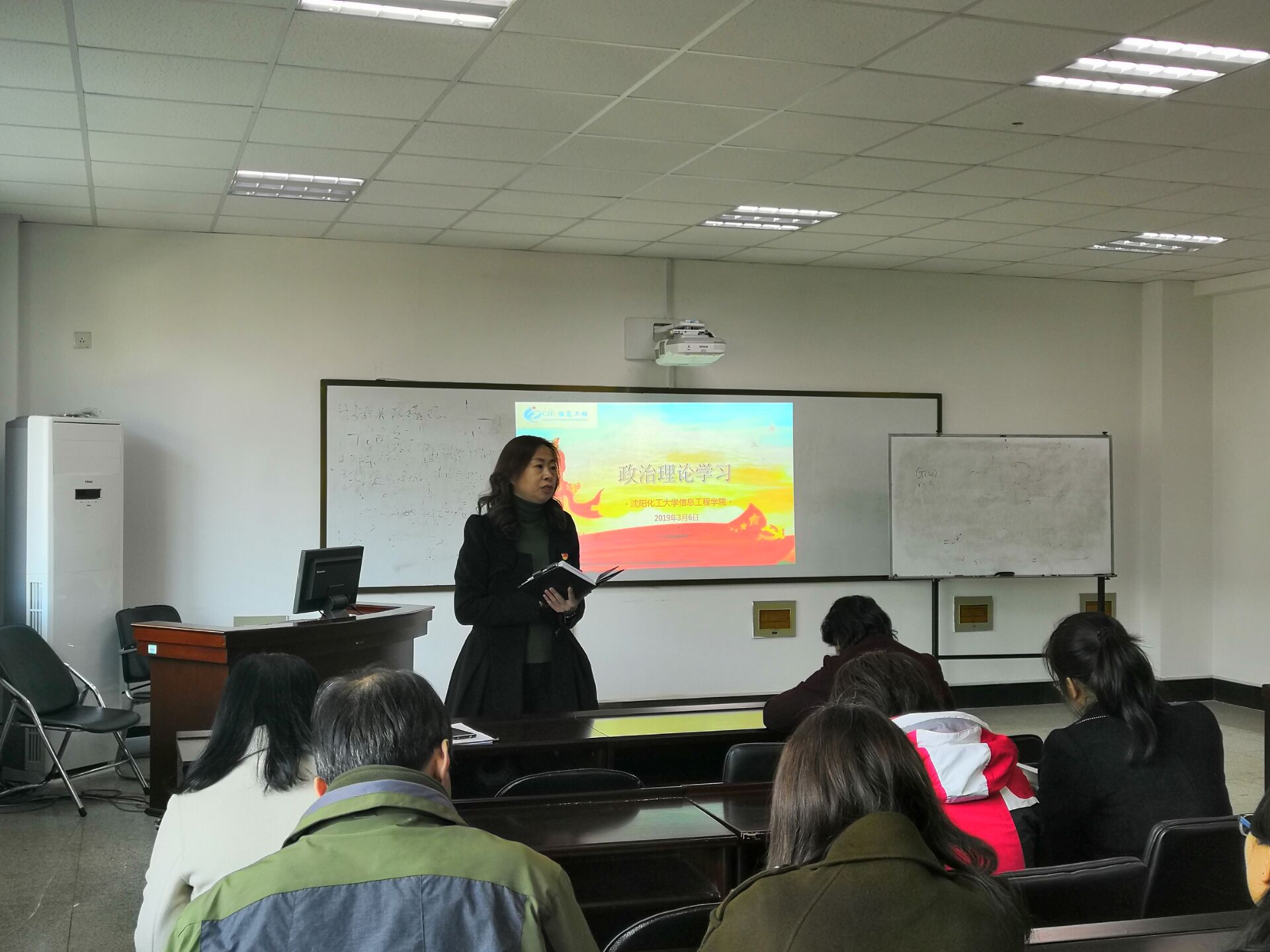 随后总支宣传委员赵文丹同志介绍了今年1月18日召开的全国教育工作会议上陈宝生部长的讲话精神。讲话主要包括六部分,分别是:把“两个大计”转化为教育优先的实际行动;从薄弱处着手落实立德树人根本任务;在全社会重振师道尊严;打赢教育脱贫攻坚战要取得决定性进展;克服“顽瘴痼疾”破除体制机制障碍;加强党对教育工作的全面领导。