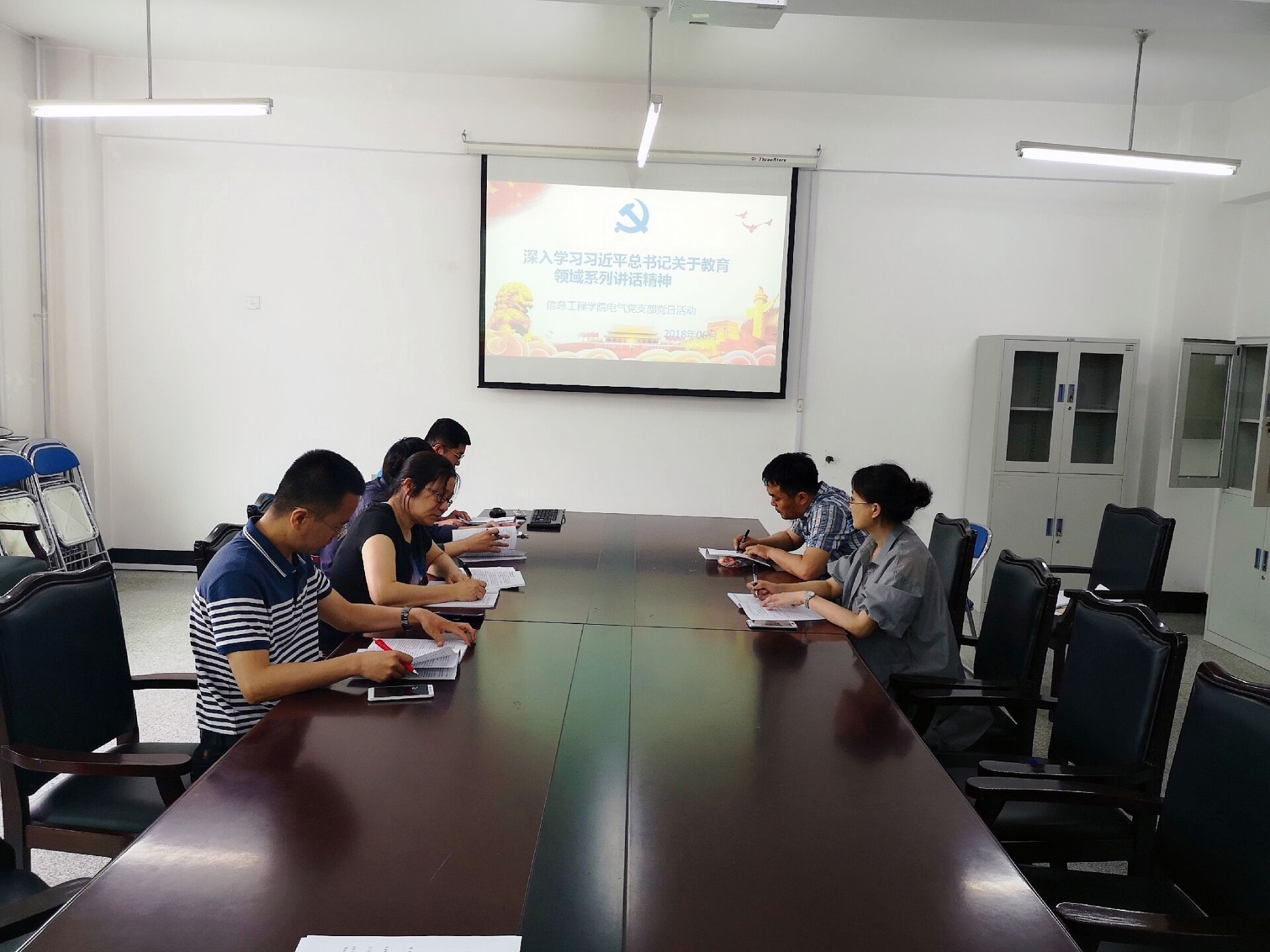 2018年6月13日,电气党支部在8#226举行了主题党日活动,党支部成员准时参加,学习了习近平总书记关于教育领域系列讲话。