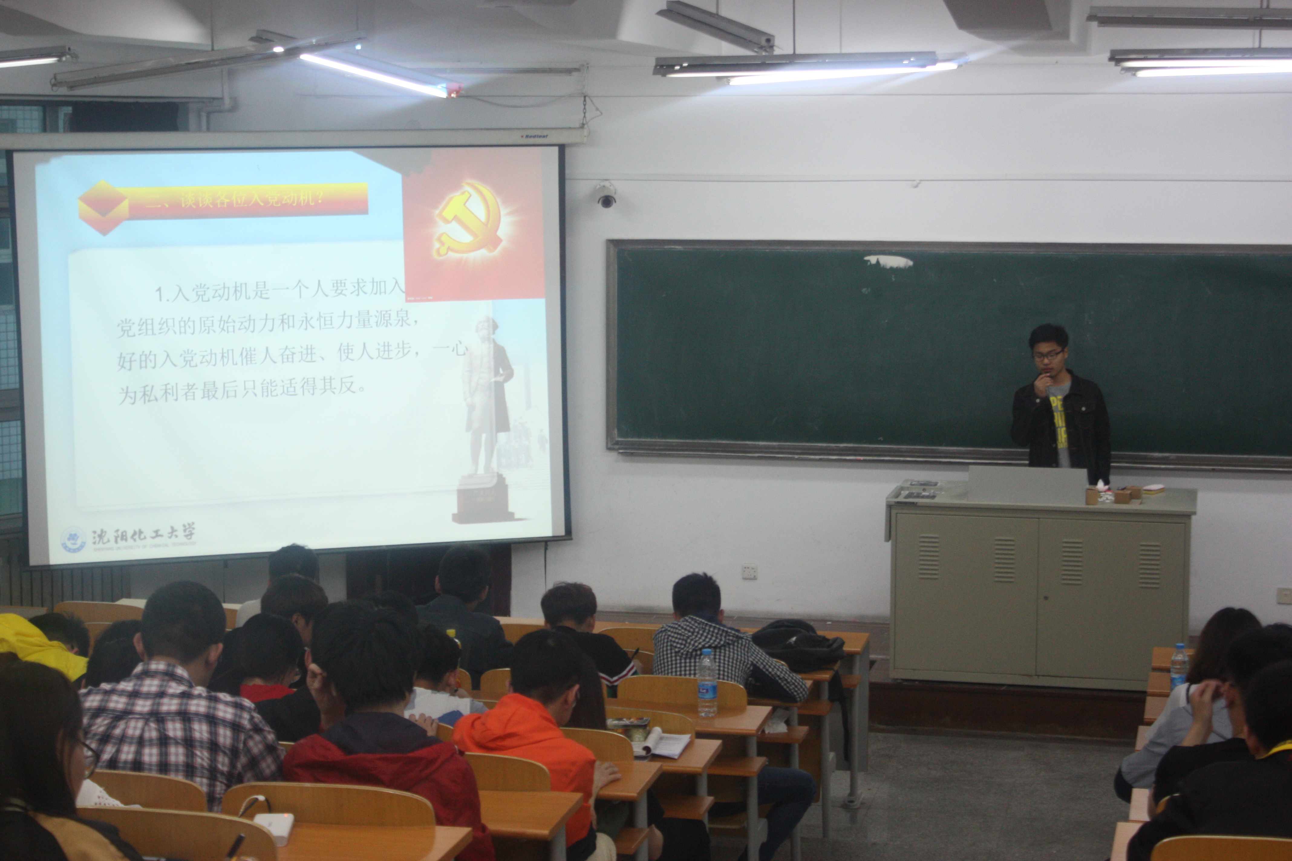 翟家方则对同学们进行了入党教育。首先讲述自己入党的亲身经历,让同学们了解其入党的初衷。接着指出作为老员工应当积极关注时事政治,树立正确的入党观念。然后向同学们详细地介绍了入党的条件与流程并希望同学们都能不断加强政治理论学习,丰富科学文化知识,早日加入中国共产党。