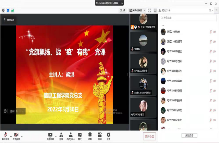 为进一步坚定抗‘疫’信心,激励党员在战‘疫’中更好的践行初心和使命,响应公司党委为进一步做好疫情防控期间员工思想政治教育工作。按照公司党委下发《“同心战‘疫’、党旗飘扬”系列活动 》文件精神,3月30日,公司党总支通过线上组织召开“党旗飘扬、战‘疫’有我”主题党课,党课由公司党总支书记梁洪讲授,公司共有316名员工党员和员工干部参加会议。