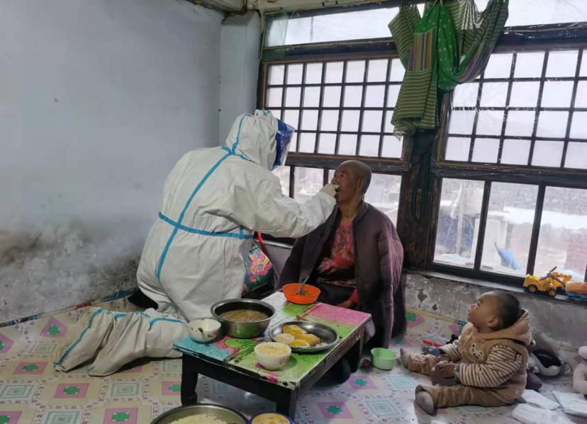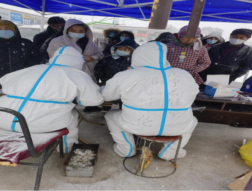 2022年2月11日下午,他参加了红十字会的前期培训工作,熟练地掌握了穿脱防护服以及采集流程,2月12日早6点,他坐上了前往黑山科乡的大巴车,经过三个小时的车程,九点钟到达了黑山科乡,紧接着,他又马不停蹄地前往了黑山庙村,当时的室外温度是零下二十度左右,他的任务是采集村民的身份信息,由于温度过低,他所佩戴的面罩上面全是哈气结的冰,对视线产生了很大的干扰,他凭借自己对手机打字以及软件的熟练操作,完成了黑山庙村全部村民共计2144人的核酸身份信息登记,其中有部分村民由于行动不便,他们只能上门采集,他们先是坐摩托到山脚下,然后再搭乘拖拉机上山,再经过几十分钟的徒步,到达行动不便的村民家里采集核酸,因为山沟里面的人家不是一户挨着一户,他们只能采集一家,然后再徒步到另一家,就这样,他们从下午三点钟,一直干到了晚上十一点钟,山路崎岖不平,而且路上还有积雪,他们一步一个脚印,用实际行动诠释了当代老员工的责任与担当。