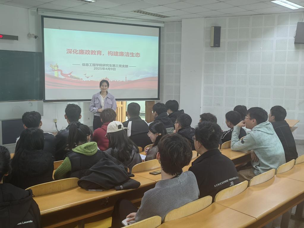 为深入学习习近平总书记关于党风廉政建设的重要论述和指示批示精神,三亿体育研究生第三党支部于4月9日在通明楼338教室组织开展“深化廉政教育,构建廉洁生态”主题廉政党课,党支部全体党员参会,党支部书记孙盼盼主持会议并为支部党员讲廉政党课。